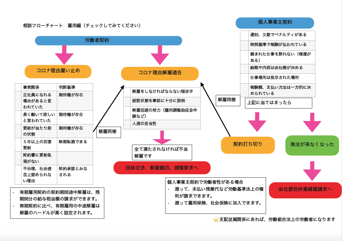 「業務委託」「請負」でも労働者と同じに判断される事があります